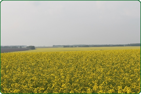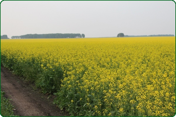 Созревание. Рапс в момент начала стручкообразования начинает пригибаться, цепляясь и переплетаясь, друг с другом. Образуется огромная биологическая масса (более 500ц/га), высотой около 1 метра, на вид состоящая из одних стручков. К моменту созревания образовывается воздушная подушка, которая удерживается мощными стеблями. Расстояние от земли до стручков 20-25 см. (Можно убирать прямым комбайнированием). Стручки практически не растрескиваются, так как даже при сильном ветре масса не шевелится.
