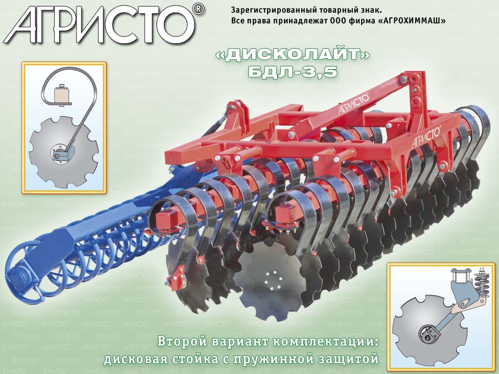 Дисковые бороны «ДИСКОЛАЙТ» БДЛ-2,5 и БДЛ-3,5 могут агрегатироваться с однорядными глубокорыхлителями ПЧ-2/1-4 и ПЧ-3/1-6 и превращаться в дисковый глубокорыхлитель «АГРИКОМ».