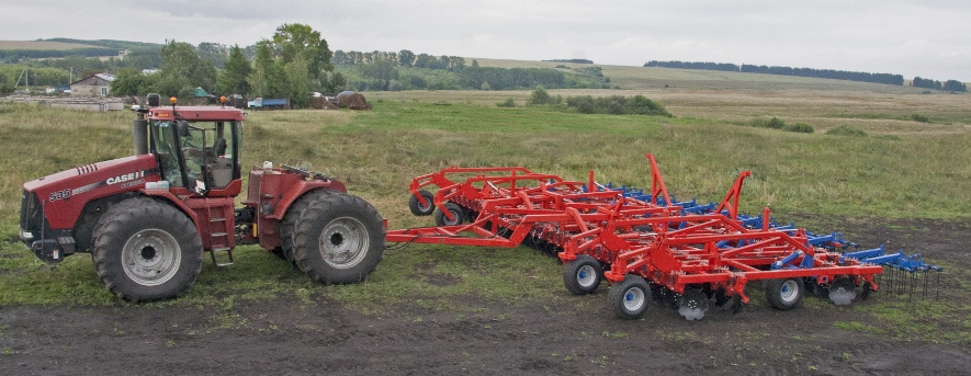 Четырёхрядное расположение дисков (расстояние между соседними рядами 75 см) с давлением 130-135 кг на диск дают возможность производить обработку при огромном количестве растительных остатков и повышенной влажности почвы, или же сильно пересушенной почвы.
