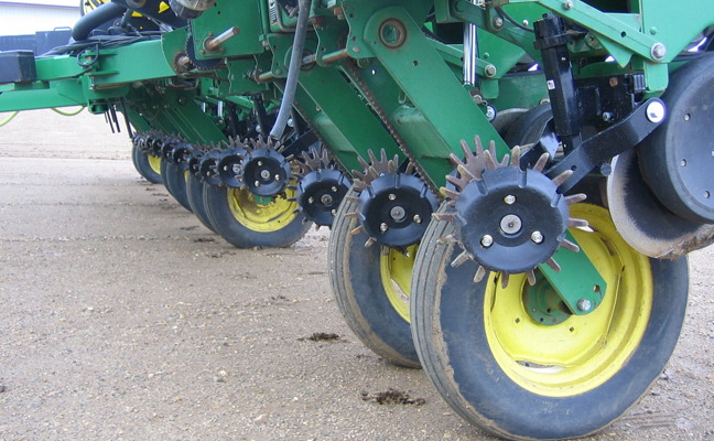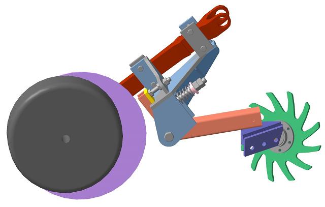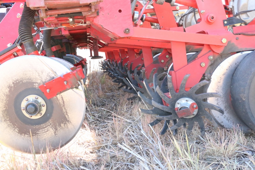 При прямом севе зерновых пожнивные остатки тоже могут заминаться в рядок и для предотвращения такого заминания (задавливания) применяется однодисковый очиститель рядка.