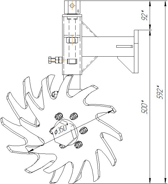 Очиститель рядка КОМБИНИРОВАННЫЙ (со штатным колтером) для пропашной сеялки Гаспардо МЕТРО (Gaspardo METRO), диск на 13 лучей, диаметр 350мм, легированная сталь толщиной 10 мм (для прямого посева) |