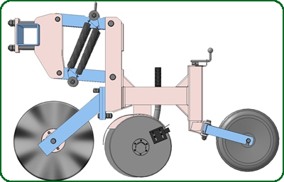 Вслед за колторным диском с шагом 15см расположены двудисковые копирующие сошники на параллелограммной навеске давлением 80-120кг (давление регулируется натяжением пружины). Ход сошника вверх-вниз 30см – это позволяет иметь превосходное копирование поля. Параллелограммная навеска сошника всегда гарантирует его перпендикулярность и оптимальный угол атаки дисков. Опережение одного диска другим способствует лучшему заглублению и самоочищению дисков. Диски сошника Ø373мм изготовлены из износостойкой боросодержащей стали OFAS (Италия). Ступицы подшипника имеют защиту от пыли и грязи, подшипник FKL двухрядный радиально упорный увеличенного ресурса также с дополнительной защитой. Диски сошника оснащены внутренними и наружными чистиками для предотвращения налипания почвы, это также помогает при работе по переувлажненной почве.